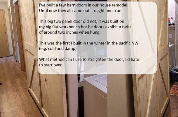 It was built on a big flat workbench but when I assembled and hung the thing it shows about two inches of twist.