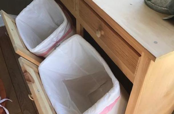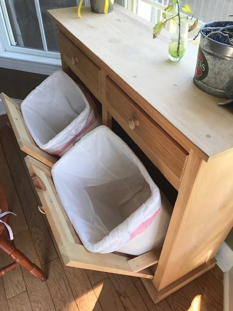 I have a dual tilt-out trash can cabinet we purchased years ago to use in our old house to hide the trash and recycle. Now that I have a place to hide trash under a pull-out within my kitchen cabinet, I want to convert the titl-out trash cans to pull-outs so I can add shelves to use as a spice cabinet. Can you covert a tilt out to a slide-out and add a shelf?