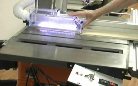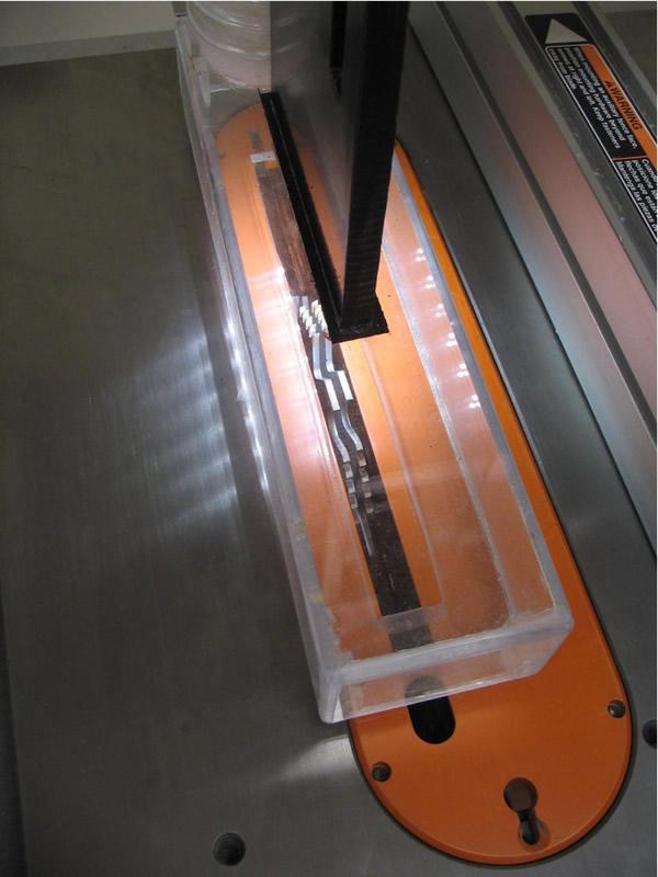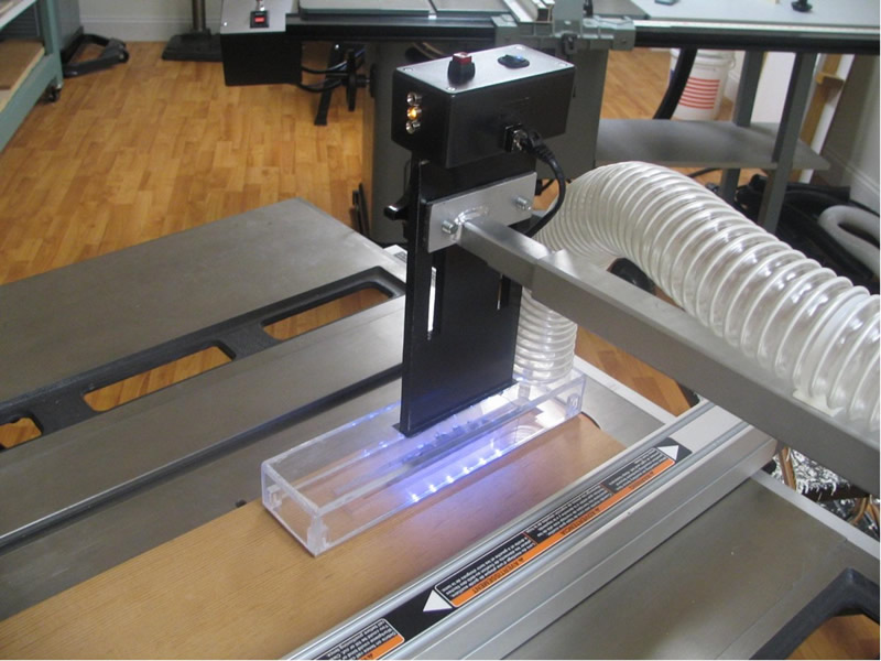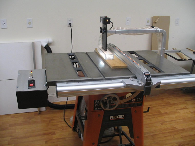 I see many comments on woodworking forums that Whirlwind safety might be okay, but it would often have to be removed for some operations. I respectfully disagree, so let me explain. The Whirlwind design is intended to improve dust control above the table and guard the operator from placing hands too close to the spinning blade. If that should occur and the operator contacts the bottom edge of the enclosure the saw will shut down and emergency stop, thereby serving as a lesson and a warning. The saw may then be immediately restarted.