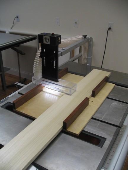 This guard/enclosure is so effective that we have used the saw backwards; that is feeding stock from the rear to the front of the saw. Why would anyone ever want to do so? Because your saw is now also a scoring saw for clean cutting expensive veneered sheet goods without the damaging tear-out that results on single blade table saws!